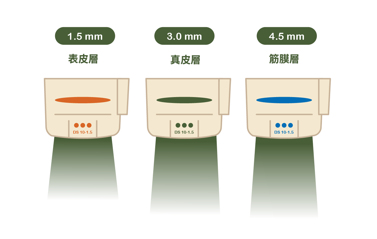 三款探頭(1.5、3.0、4.5mm)皆由醫師依個人肌膚狀況客製化搭配使用;